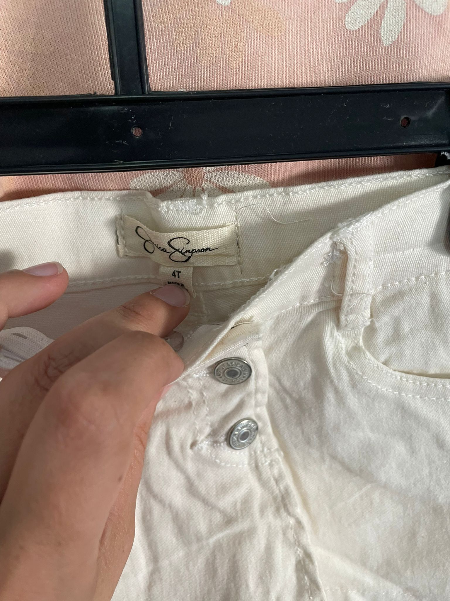 Conjunto Buzo rosa con flores y Short pollera color beige niña talle 4
