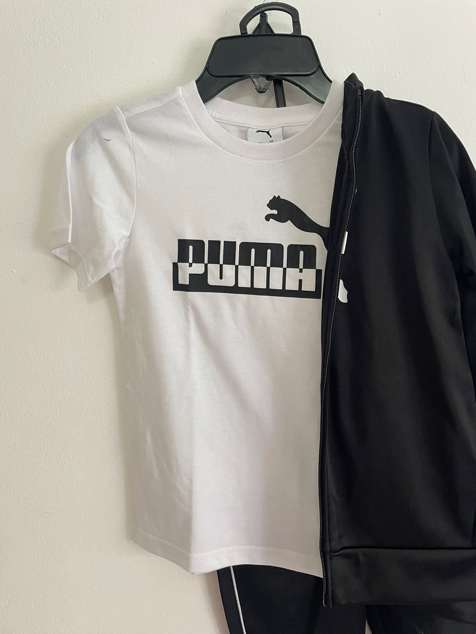 Conjunto de 3 piezas Campera negra Remera blanca Y Pantalon negro marca Puma niño talle 6