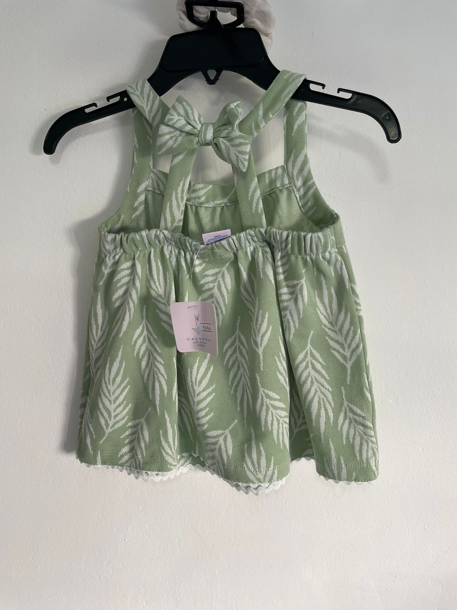 Conjunto de musculosa y short con gomita de pelo verde estampado niña talle 4