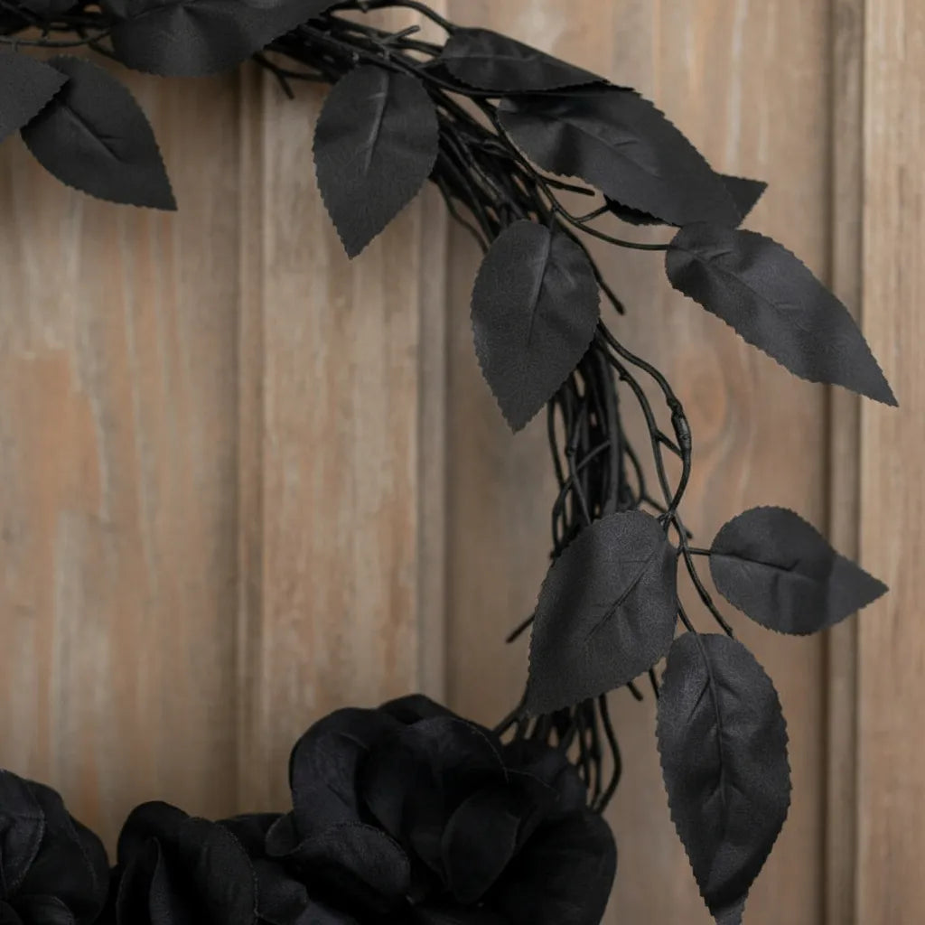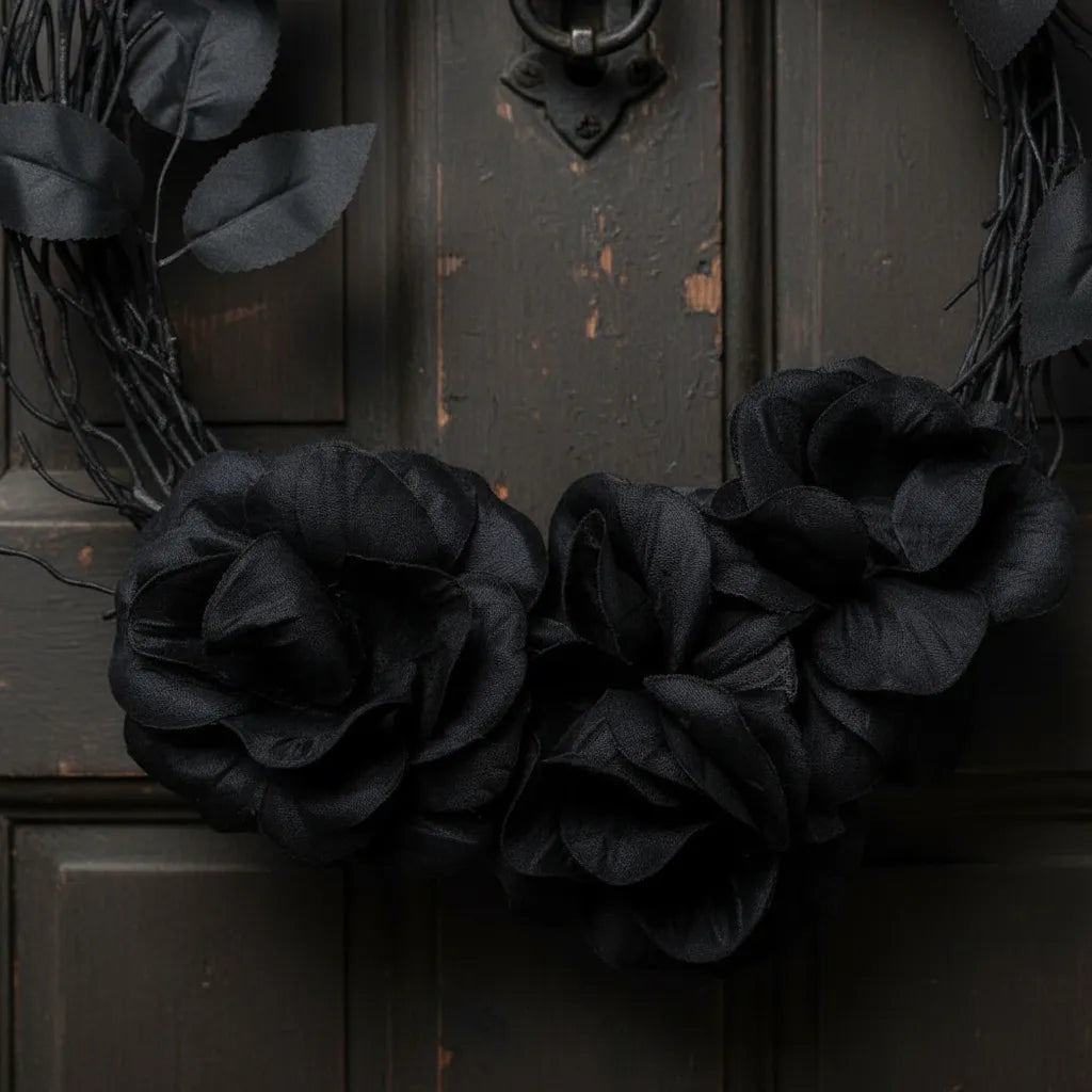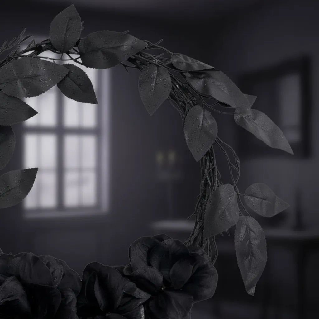 Transforma la entrada de tu hogar con esta elegante corona negra, perfecta para decorar en Halloween. Su diseño sobrio y sofisticado crea una atmósfera misteriosa y atractiva, ideal para recibir a tus invitados con estilo. Añade un toque de encanto oscuro que resalta en cualquier puerta, haciendo de tu decoración una muestra única y memorable para la temporada. Fácil de colocar y reutilizable, es el detalle ideal para complementar tu ambiente festivo.