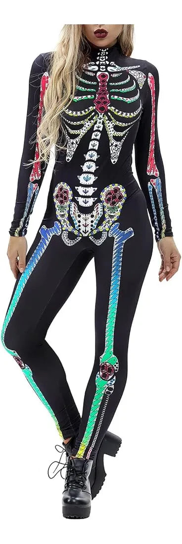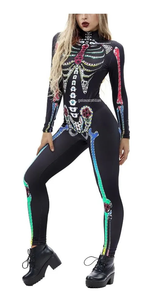 Este disfraz de esqueleto para adulto está diseñado en malla ligera y ajustada, ideal para lucir en Halloween o eventos de cosplay. Su diseño detallado de huesos realza tu figura, ofreciendo un look impactante y auténtico. Perfecto para quienes buscan destacar con un estilo espeluznante y cómodo al mismo tiempo.