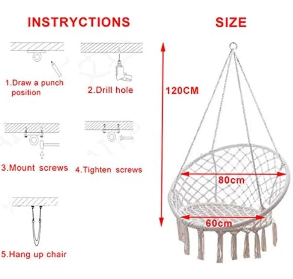 Relájate en estilo con esta hamaca sillón colgante que combina comodidad y diseño bohemio. Confeccionada en algodón resistente con detalles de macramé artesanal, su estructura circular ofrece un espacio acogedor perfecto para leer, meditar o simplemente desconectarse. El tono beige neutro se adapta a cualquier espacio, desde terrazas y jardines hasta rincones interiores. Suspéndela en tu árbol favorito o en una estructura de soporte y disfruta de ese balanceo relajante que te transportará a un estado de pura tranquilidad. ¡Tu refugio personal te espera!