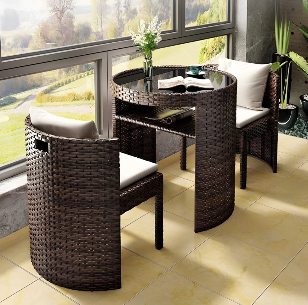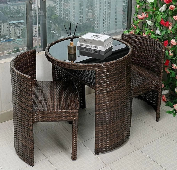 Juego De Balcón Ratán Sintético Mesa Y 2 Sillas