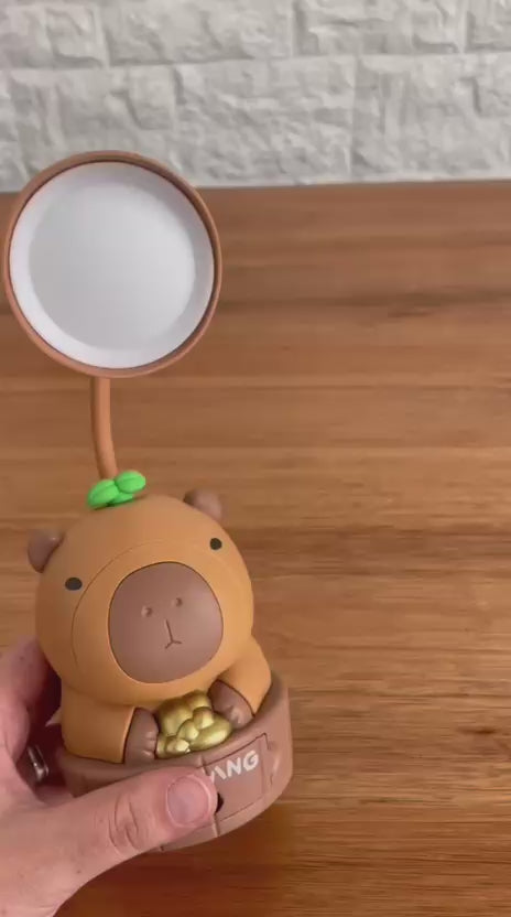 Esta lámpara veladora infantil de Capibara, de 29 cm y con conexión USB, es perfecta para crear un ambiente cálido y seguro en la habitación de los más pequeños. Su diseño adorable y tamaño ideal facilitan su uso diario, mientras que la alimentación por USB garantiza comodidad y versatilidad. Añade un toque de ternura y luz suave para acompañar los sueños de los niños.