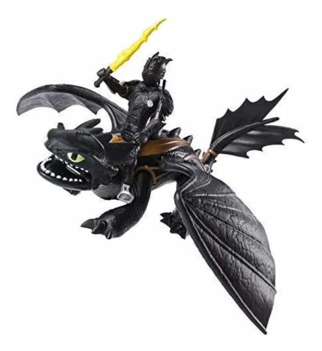 Trae a casa a Chimuelo, el legendario dragón nocturno de "Cómo Entrenar a Tu Dragón". Este muñeco captura toda la magia y el carisma del personaje favorito de millones de fans alrededor del mundo. Con detalles cuidadosamente diseñados, desde sus alas hasta su expresión característica, es el compañero perfecto para coleccionistas y amantes de la saga. Ideal para juego imaginativo, decoración de habitaciones o como regalo memorable que trasciende generaciones. Revive las aventuras épicas de Berk con este icónico dragón a tu lado.