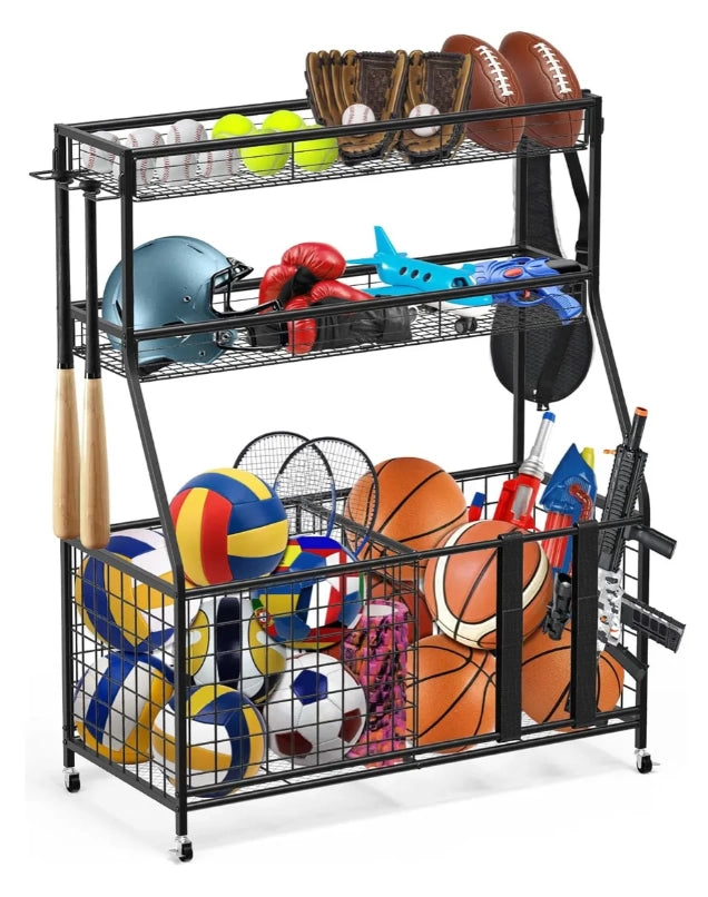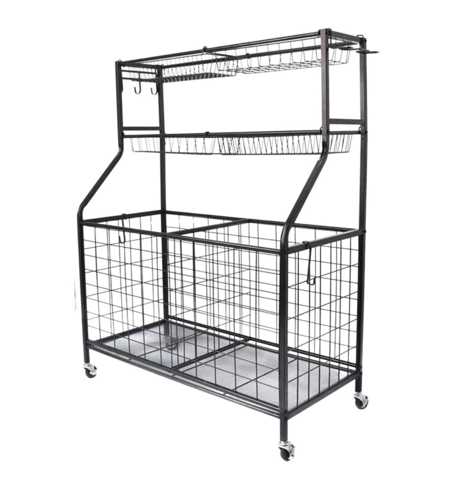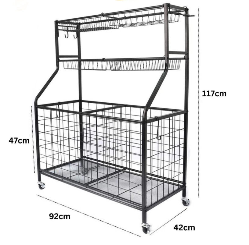 Organizador Soporte De Garaje Jardín C/cesta Ganchos Estante Acero