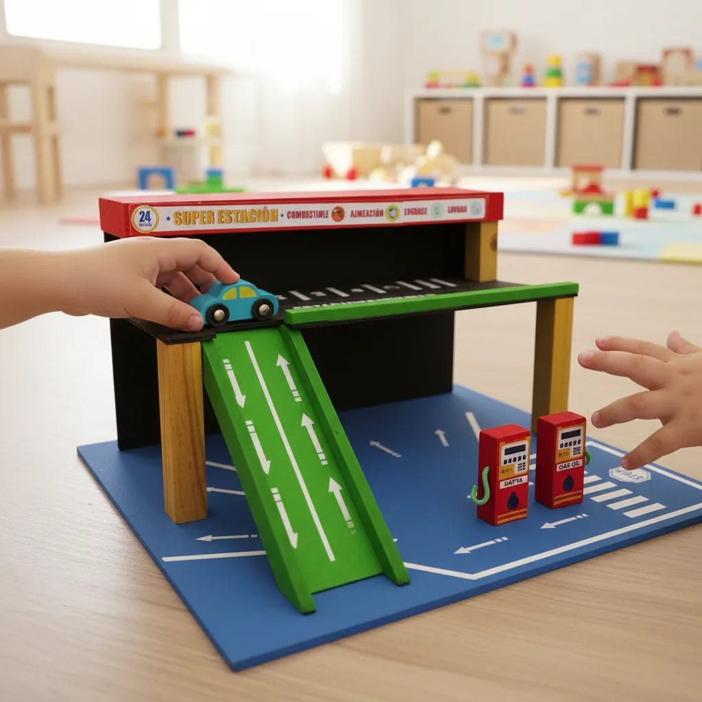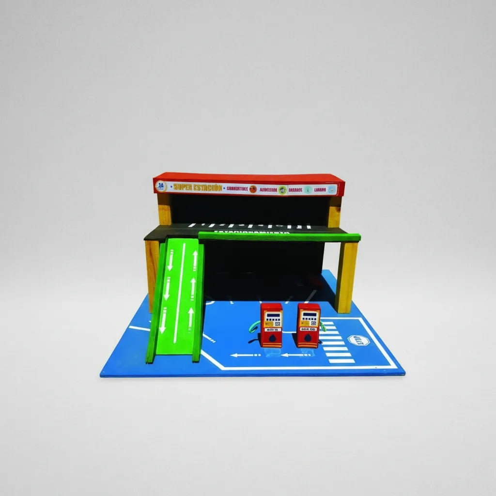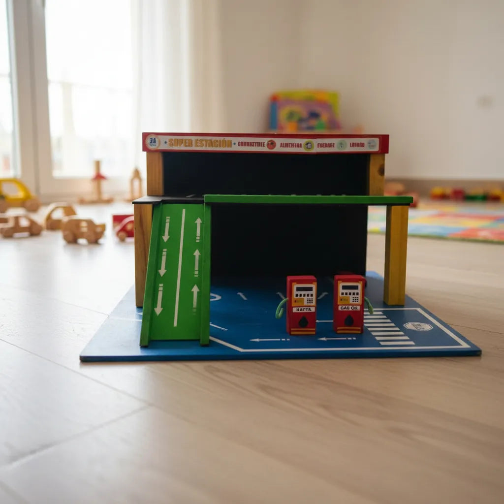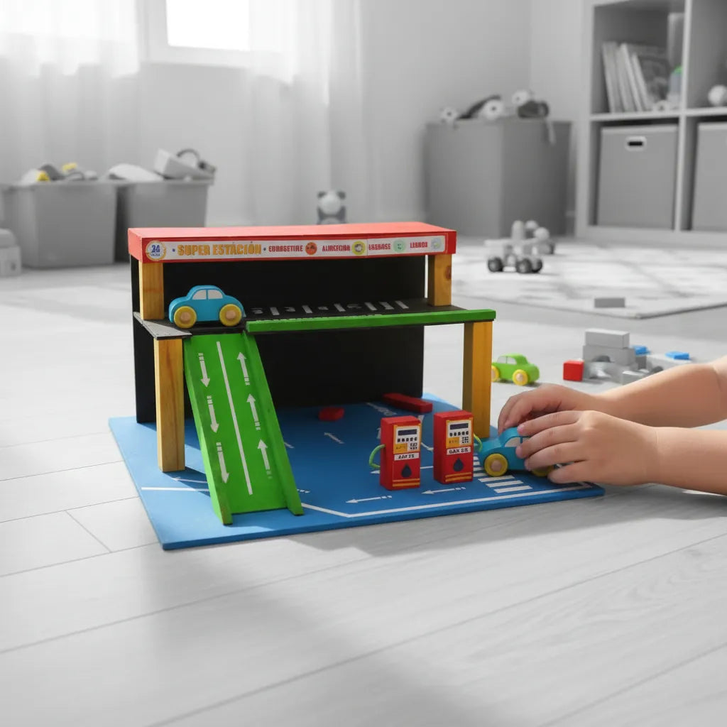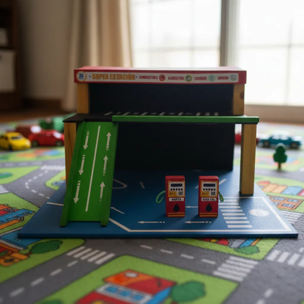 Descubre la Estación de Servicio de Madera 2 Niveles, el complemento perfecto para ampliar las aventuras de tu pista de autos. Con su diseño de dos plantas, ofrece múltiples espacios para estacionar, reparar y mantener los vehículos en movimiento. Construida en madera resistente y duradera, combina autenticidad con funcionalidad. Ideal para niños que disfrutan de juegos imaginativos, esta estación transforma cualquier colección de autos en un mundo completo de diversión. Perfecta para coleccionar, regalar o expandir tu pista existente.