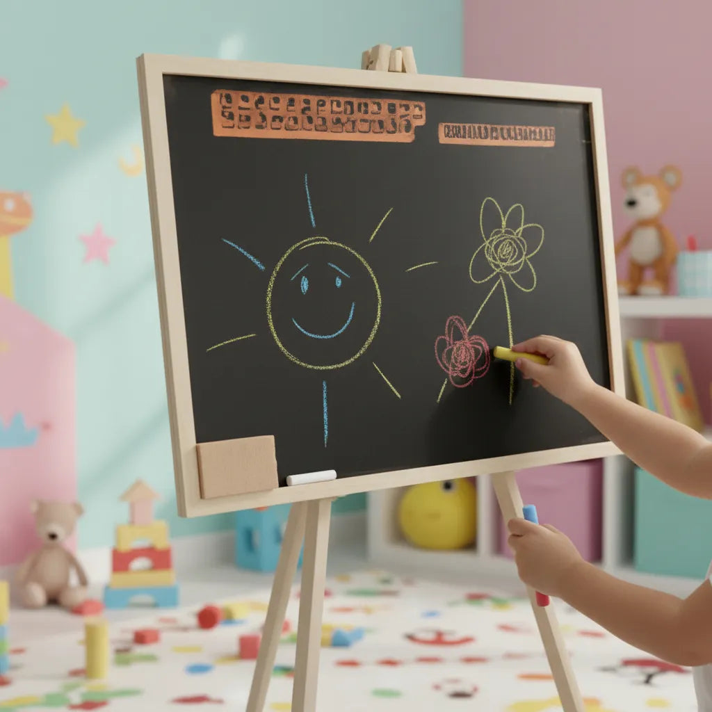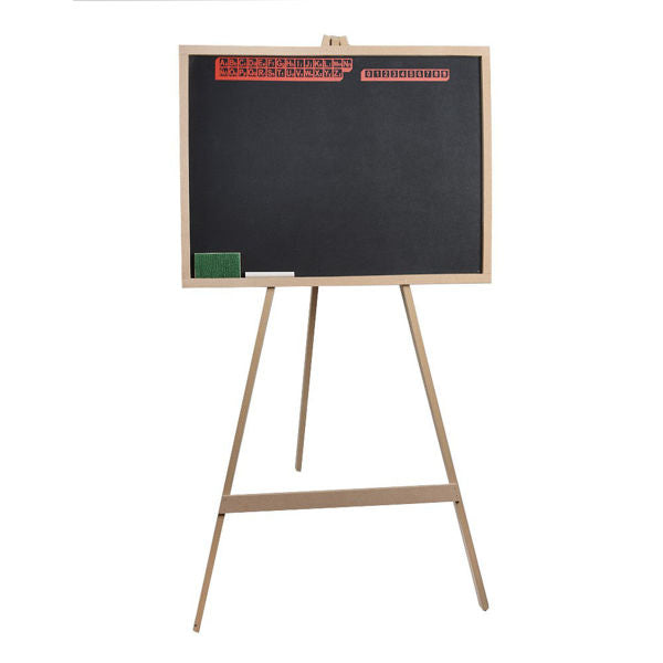 Pizarrón de pie versátil y resistente, ideal para aulas, oficinas y espacios comerciales. Estructura de madera con tres patas estables que garantiza seguridad y durabilidad. Superficie de 50x40cm perfecta para escritura con tiza, permitiendo máxima visibilidad desde cualquier ángulo. Diseño portátil que facilita su traslado entre ambientes. Solución práctica y económica para presentaciones, enseñanza y comunicación visual. Acabado natural que se adapta a cualquier decoración moderna.