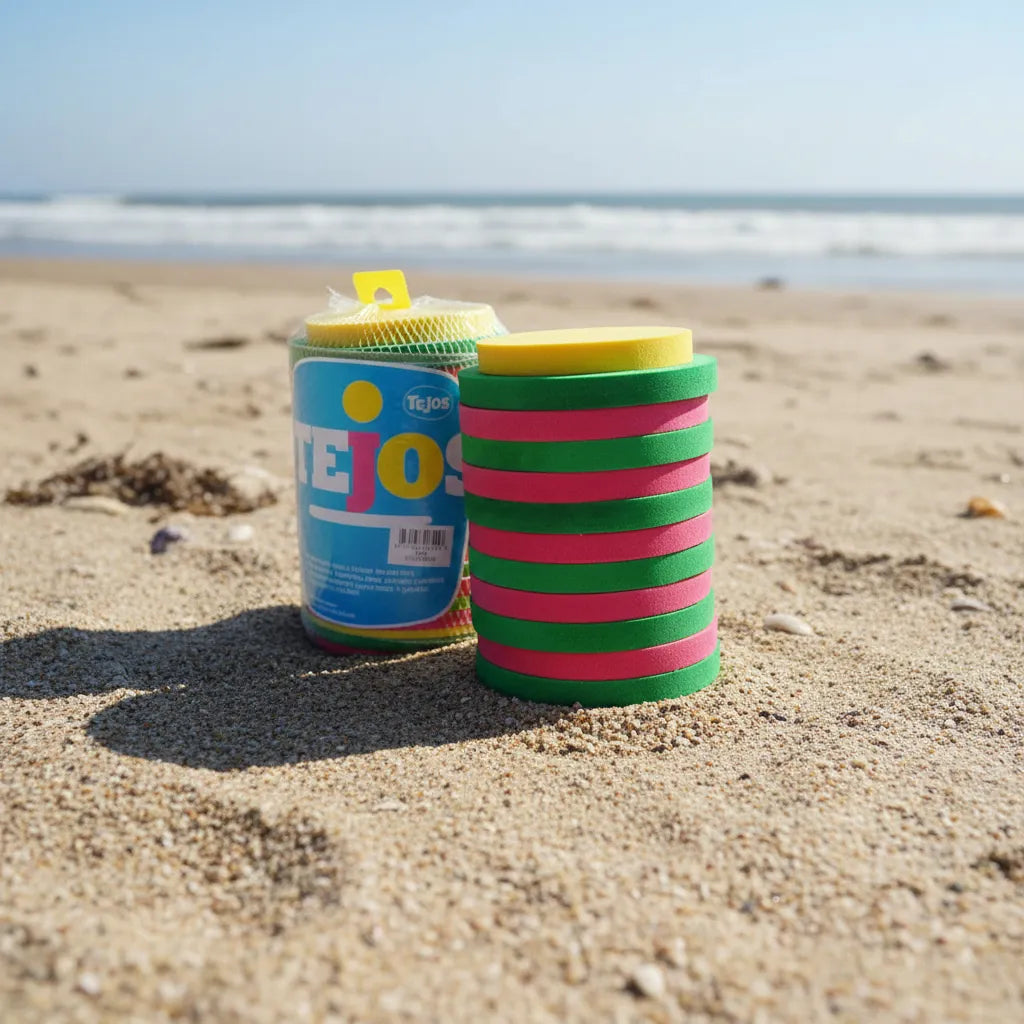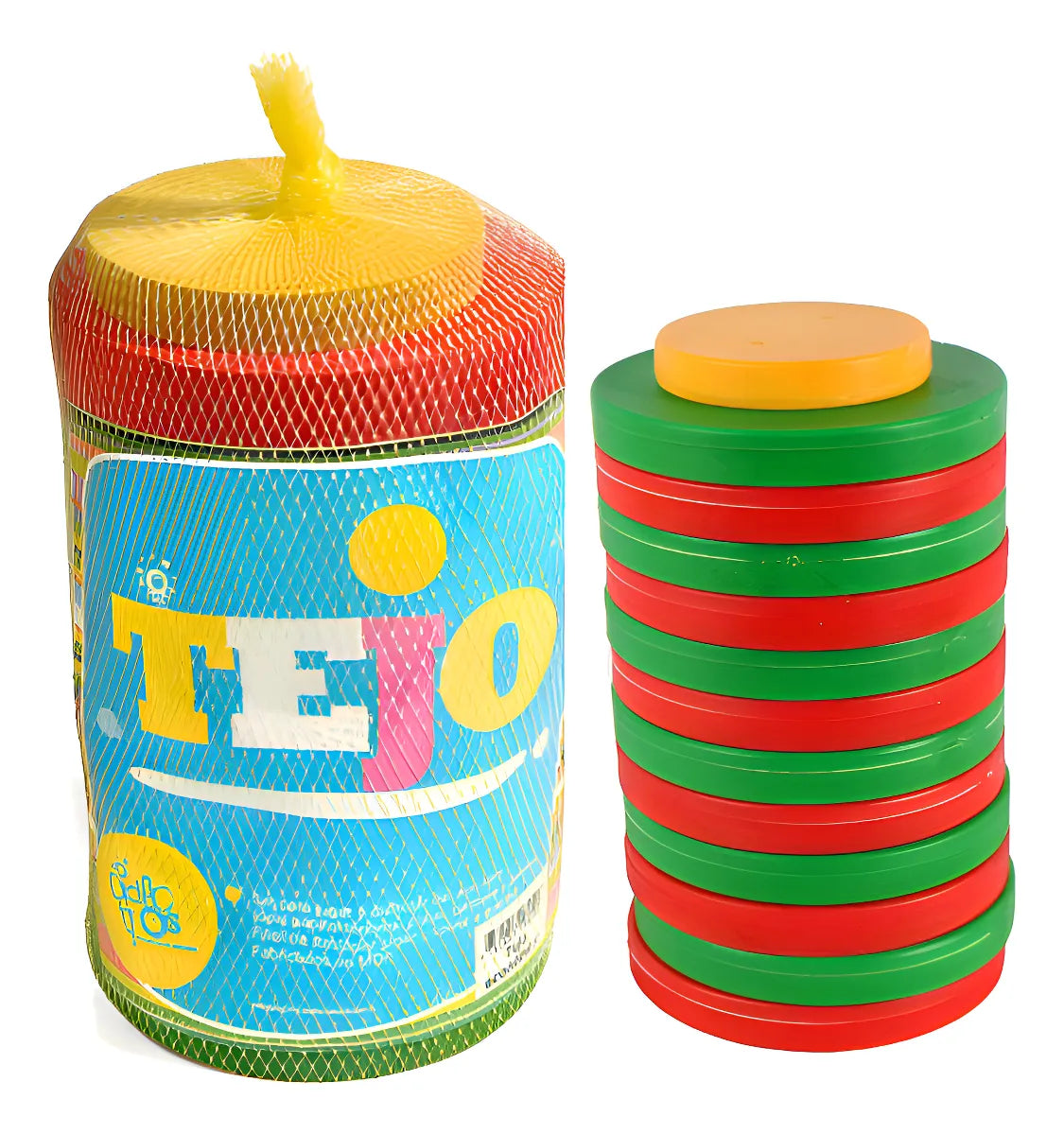 Juego completo de tejos de madera en red con 13 piezas de colores vibrantes. Cada pieza mide 13mm, perfectas para disfrutar de este clásico juego al aire libre con familia y amigos. Construcción resistente en madera natural que garantiza durabilidad y un excelente desempeño en cualquier superficie. Ideal para entretenimiento en patios, parques o reuniones sociales. Fácil de transportar y guardar. ¡Diversión garantizada en cada partida!