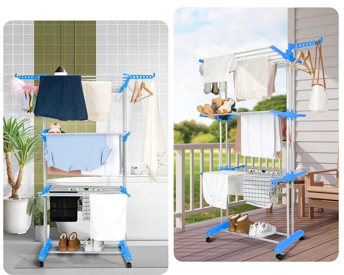 Organiza tu ropa mojada sin complicaciones con este tendedero plegable de 3 niveles. Diseñado en blanco y celeste, combina funcionalidad con un toque moderno para tu hogar. Sus ruedas facilitan el movimiento entre espacios, mientras que su estructura compacta (165x50x66cm) se guarda sin ocupar lugar. Armado rápido y sin herramientas: ¡listo para usar en segundos! Perfecto para familias que buscan practicidad sin sacrificar estilo.